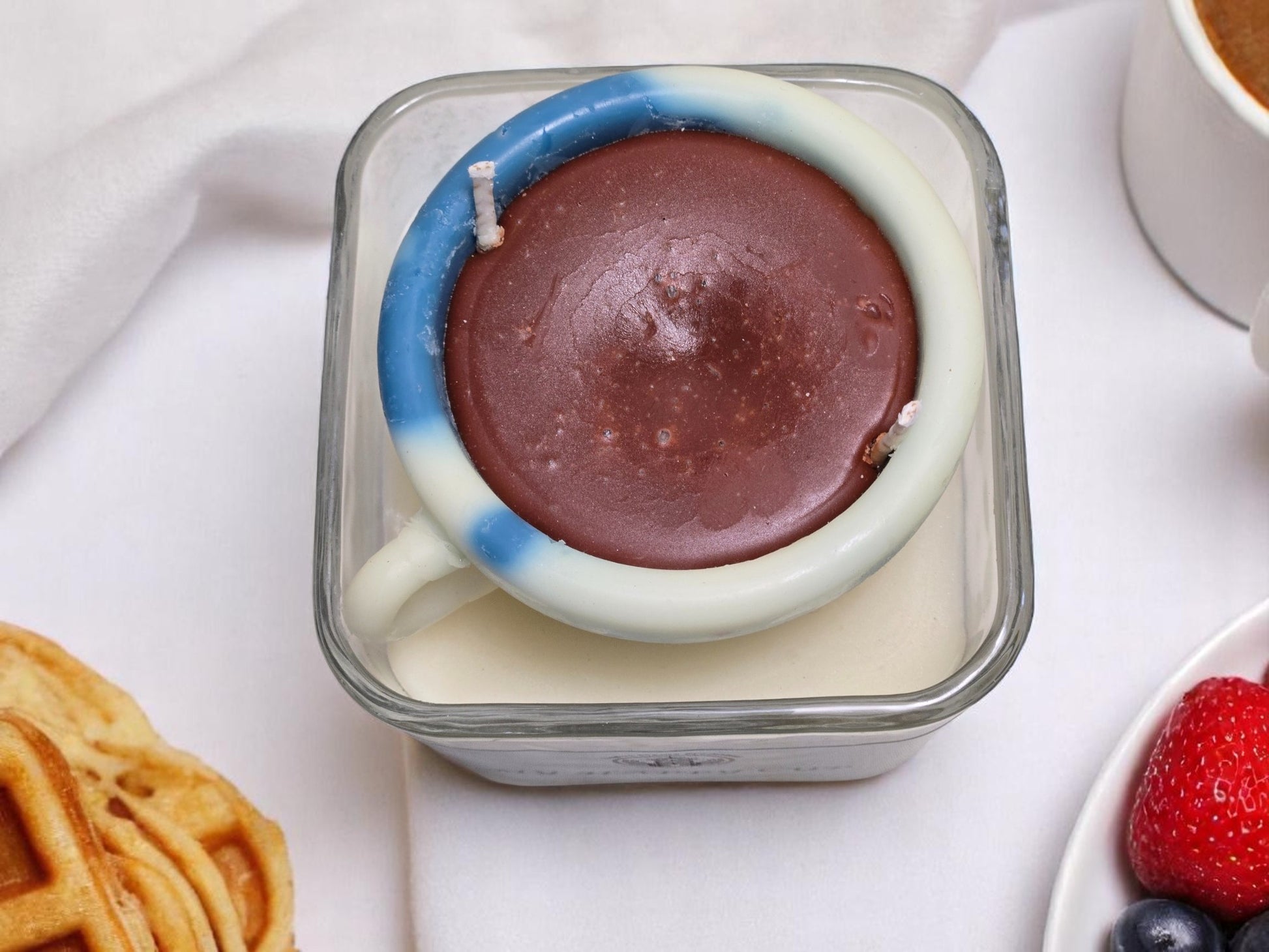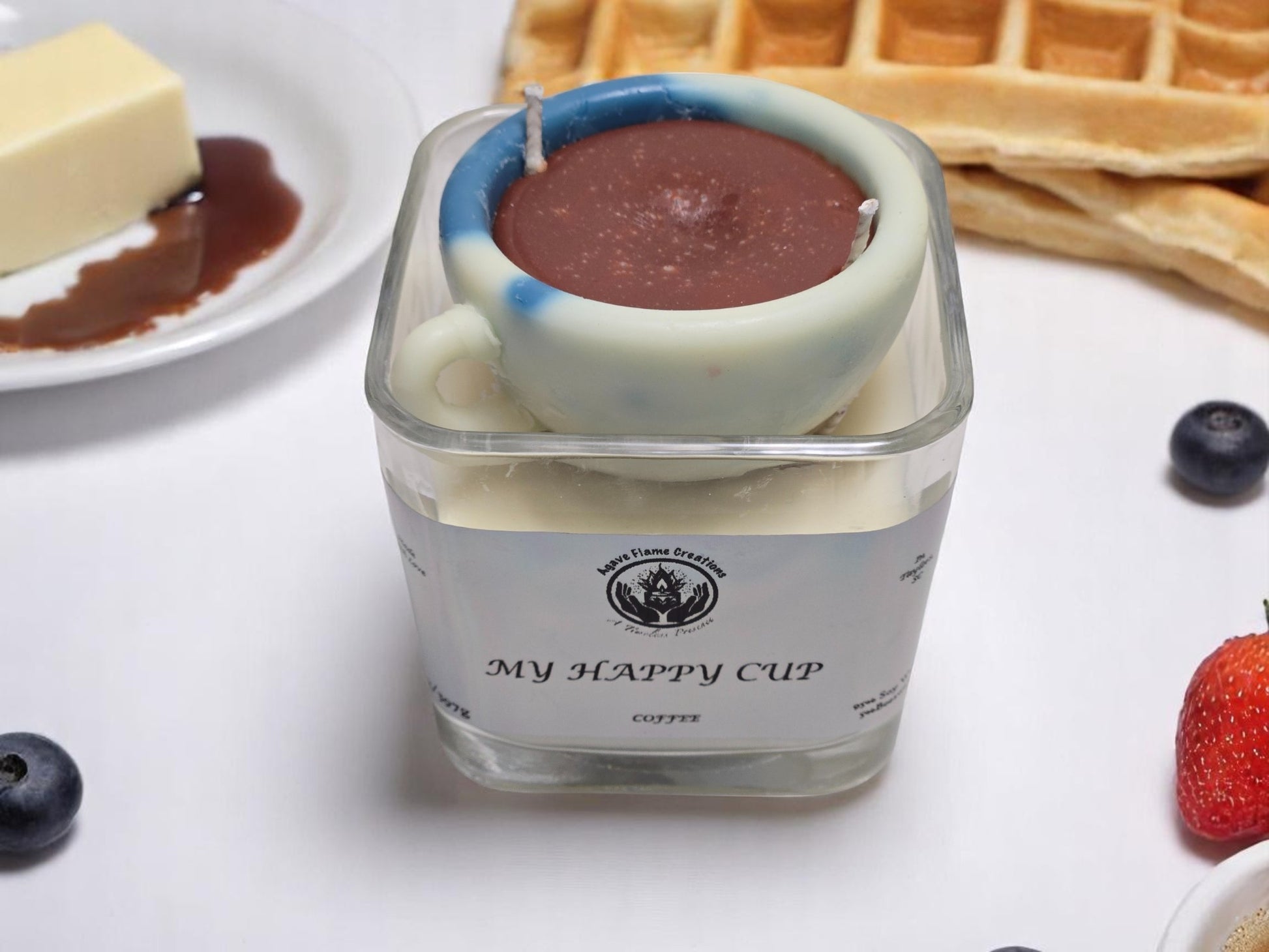 Imagine a candle that could fool anyone into thinking a delicious latte is waiting. This candle features a stunning, realistic wax embed shaped like a coffee cup with coffee perched atop the candle. The air fills with the rich aroma of freshly ground coffee beans and a roasted espresso, creating a cozy and inviting atmosphere.