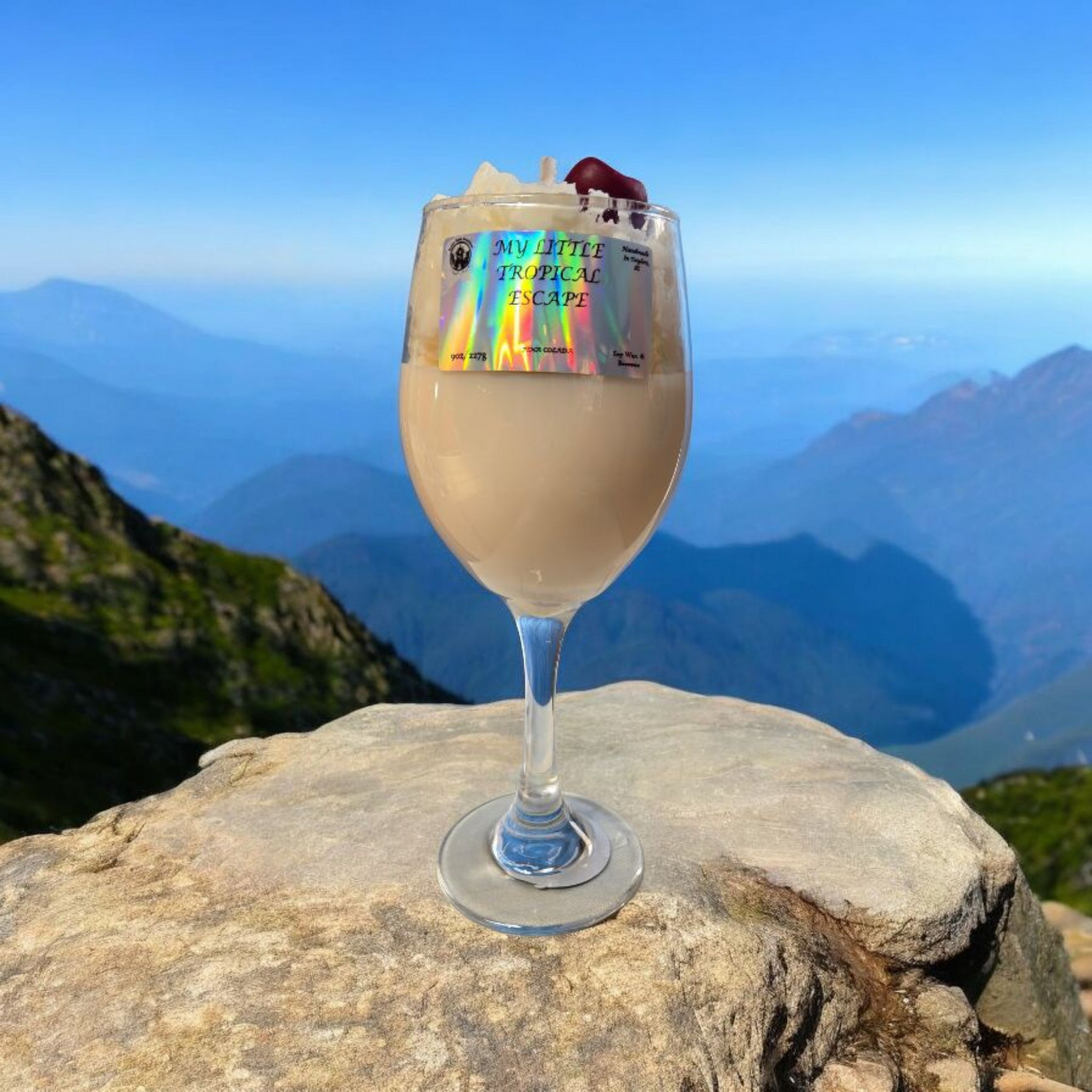 This candle is designed to evoke the spirit of a tropical escape with its cocunut scent and realistic look of a Pina Colada!On top of the creamy base is a thick, airy layer of whipped wax mimicking the frothy whipped cream often found atop a piña colada cocktail giving it a dessert-like appeal.Crowned on the whipped wax is a realistic wax cherry serving as a delightful garnish, just like a maraschino cherry on a real cocktail.