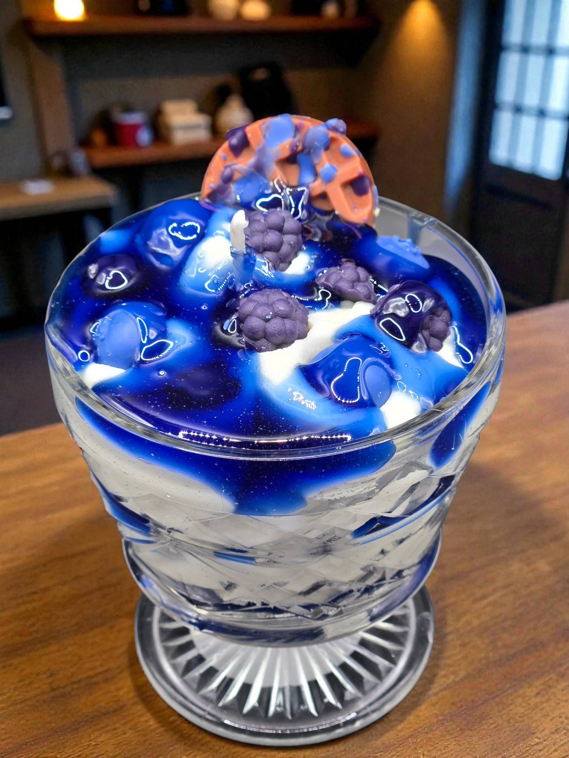 Summer Berry Delight combines a luxurious fragrance journey with striking visual appeal. The scent layers mixed berry, elderberry, blueberry, and vanilla into a harmonious composition that evolves as you burn. Visually captivating, this candle features authentic blueberry and blackberry embed pieces nestled within creamy white yogurt-toned wax, accented by a waffle t and deep blue drizzle that creates dimensional contrast. The thoughtful design merges aesthetic sophistication with olfactory complexity, making it an exceptional choice for those who appreciate candles that engage multiple senses and elevate any space with refined elegance.